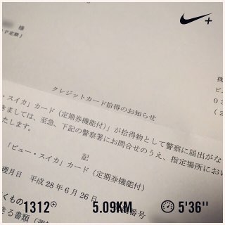 走ってるときにどこかでSuicaと定期券を落っことしたっぽい。