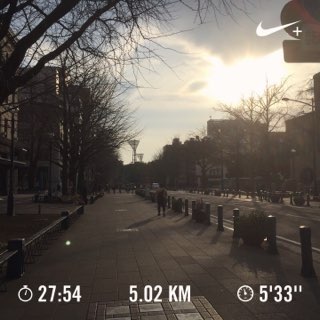 5.02km、27分54秒、平均ペース5分33秒/km。