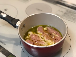 ニンニクとか鷹の爪とか入れるお料理。
