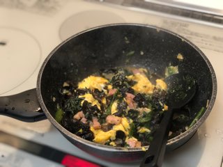 乾物置き場にあったキクラゲを使って作る中華飯。