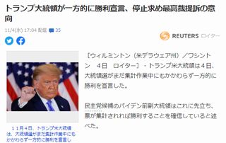 アメリカ大統領選の行方を見守っております(Yahoo!ニュースで)。