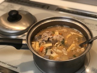 冷蔵庫にあった食材で豚汁っぽいものを作ってみました。