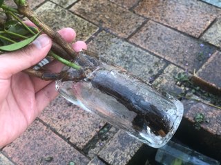 樒(しきみ)を入れていたお花立ての水が凍って氷になっていた。