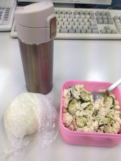 昨晩作った豚汁におからサラダ、今朝握ったおにぎり。