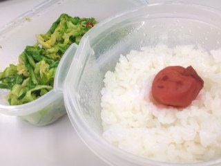 ご飯と中華風キャベツ炒め。