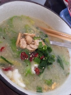 キャベツ、小葱、鷹の爪、ナッツ、冷凍御飯を入れてみた。