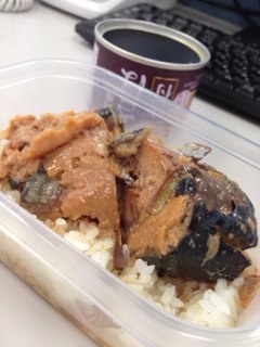 冷凍ごはんにサバの缶詰を乗せただけの簡易弁当。