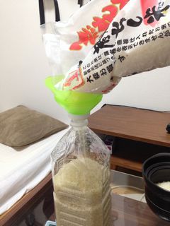 2Lのペットボトルで2kg弱のお米を保存できる。