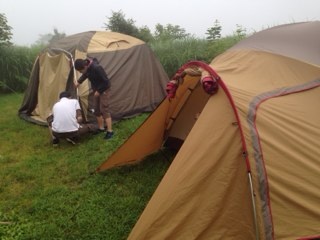 その間にテント設営班は頑張ってる。