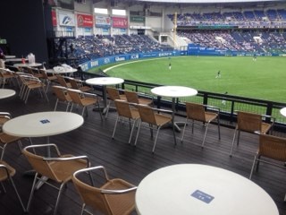 人気のQVCマリンフィールド外野スタンドデッキ(テーブル席)だって。