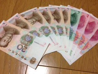 出発前、日本国内の空港で両替した約1万円分の中国元。