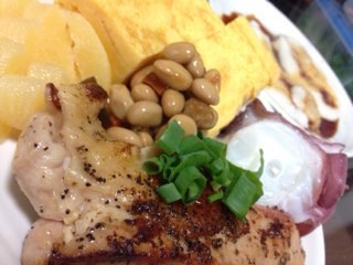 卵焼きに数の子、たこ、豆、そして鶏肉。