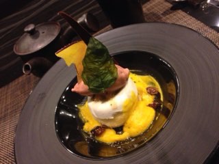 ナイフを入れる角度によって味や食感、温度の違いを楽しもうなんて