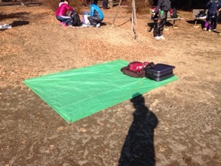 いつもの緑のレジャーシート(固定ピン付)。便利です。
