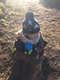 切株の中にすっぽりはまる。