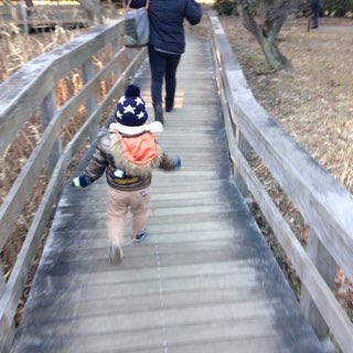 孫の写真を撮りたくて距離を取ろうと走る母。
