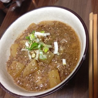 今日も今日とて冷蔵庫に余ってた大根と挽肉を生姜で炒めて