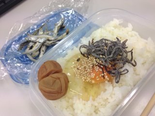 生卵に加えて白ごま、塩こんぶ、顆粒だし、梅干し、煮干の