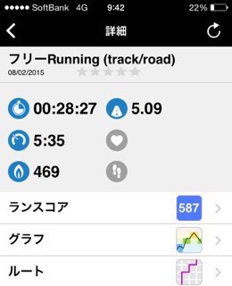 走ってきたよ。5.0km、28分。