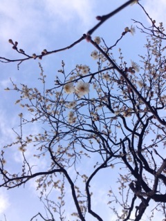 いくつかの木々に白い梅の花が咲いているのを見つけることができたよ。
