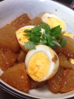 眠くて食べる前に力尽きた大根と玉子の煮込み。
