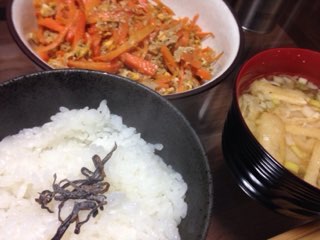 人参とシーチキンを炒めて塩胡椒と顆粒だしを加え、