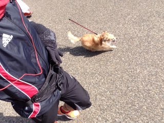 今日は偶然、小さな伴走者と一緒に走ることができた。
