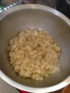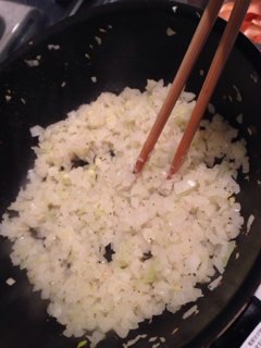 まずは玉ねぎをみじん切りにして炒め、