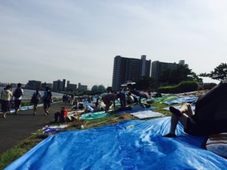 汐入公園、浅草寄りの観覧スポットは14時前にはもう一杯だった。
