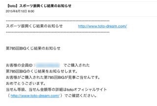 BIGが当選した場合にのみ届くよう設定したこのメール。