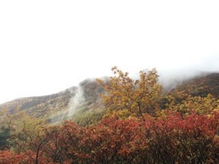 紅葉はとても綺麗なのに、めっちゃガスってる。