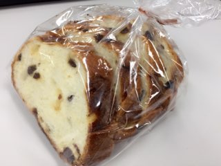 今日の昼食はレーズンパン。