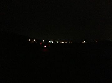 真っ暗な道の向こうに見える国道の街灯。
