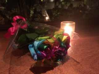 ふと目にとまったお花屋さんにその虹色のバラが置いてあるのを見つけて、