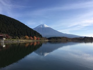 今日は快晴、風もないので水面に見事な逆さ富士を見ることができます。