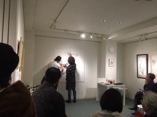 ひとつの作品を目の前で書き上げるパフォーマンス。