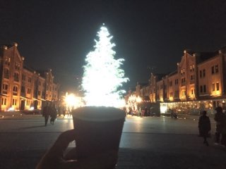 ライトアップされ幻想的に浮かび上がった倉庫を眺めてる。