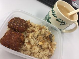 今日は炊き込みご飯と冷凍の味噌カツ。