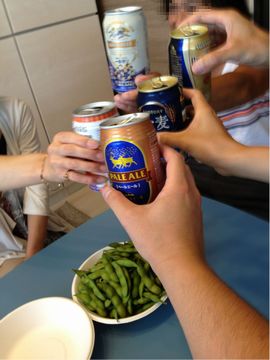 今日はにつけちゃんの新居でキャンプの打ち上げ!