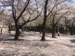 昨夜の雨にも負けず残った桜が春風に舞い散っていく。
