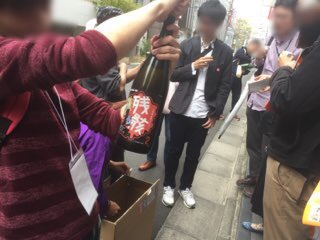 並ぶ参加者を尻目にツアーガイドさんがお店からお酒を持ち出してきた。