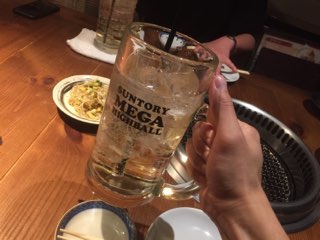 こちらメガハイボールは18時までのハッピーアワー対象商品で180円也。