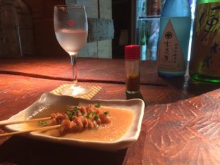 おつまみは秘伝の味噌ダレでじっくり煮込んだ鳥皮煮。