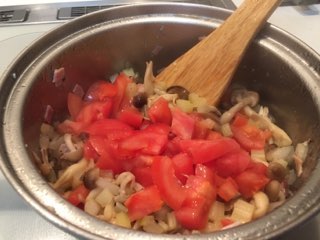 何だか予想以上に水気が出てきたのでそのまま炒めます。