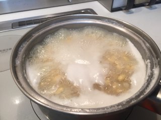 お水を替えて、アクを取りつつお鍋でコトコト。