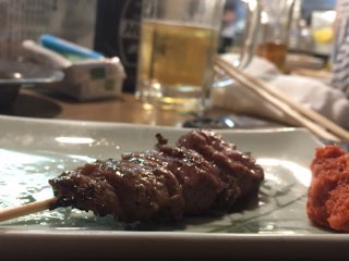 肩が触れ合うほどお隣と近いカウンターでいただく絶品串。