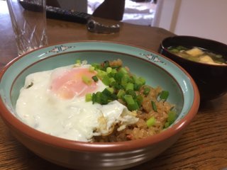今日の朝食はビビンバ風ごはんとお味噌汁。
