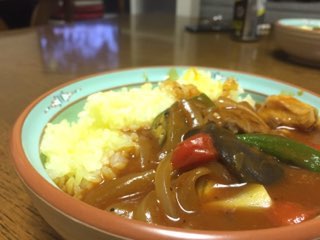ご飯もカレーに合わせてサフラン入れて炊いた。