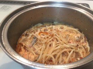 今夜は札幌味噌ラーメン風のスープでもやしを食べたいと思って