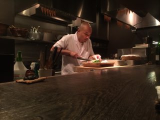 目の前で一皿ずつ仕上げてくれる様子を肴に熱燗をちびちびと。